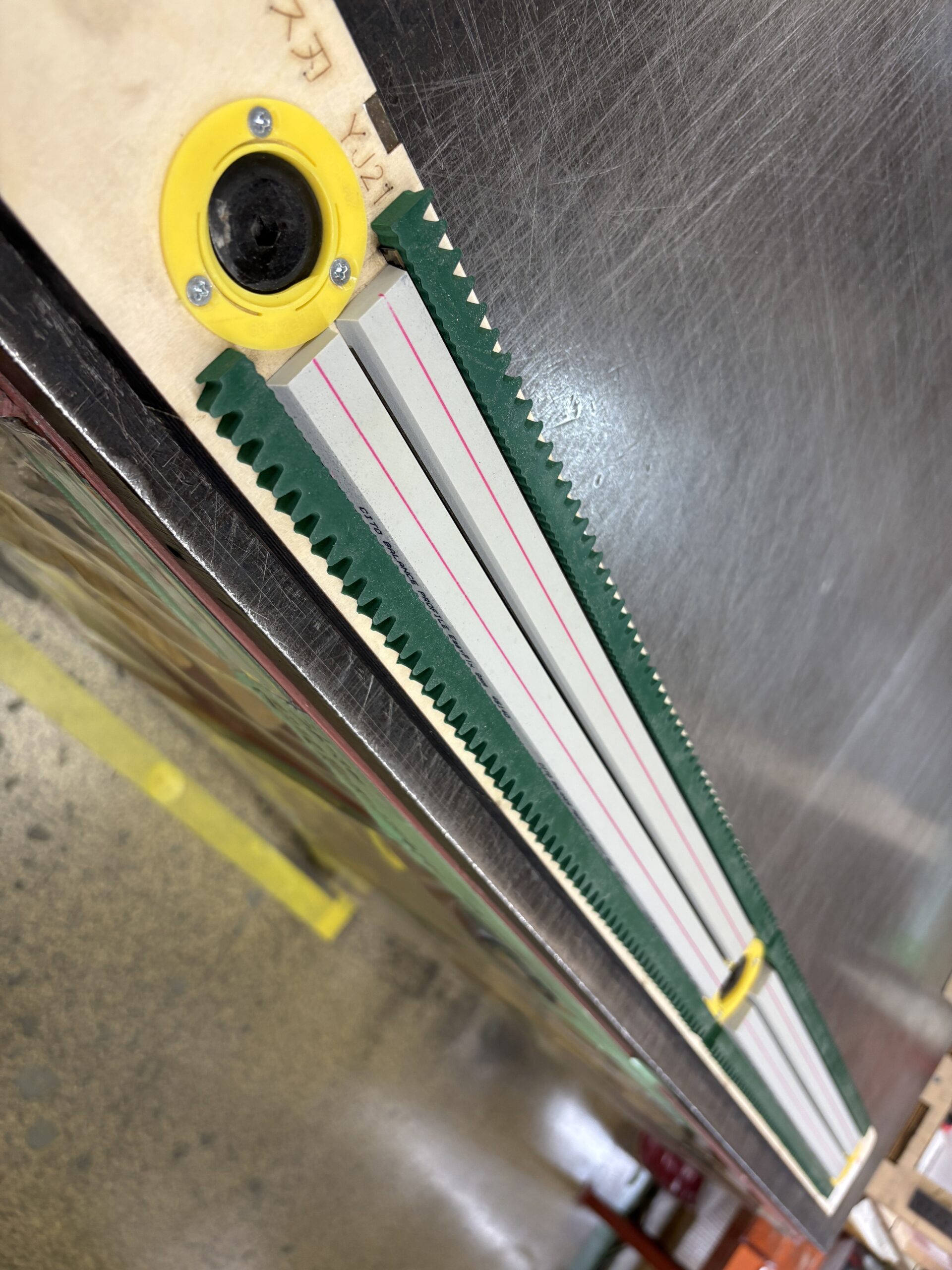 写真は菊全の打抜機用に作ったバランス刃で有る。幅は90mmで6個のチェス枠厚み部分に張付く磁石とチェス裏板に張付く3個の磁石で取り付けをする。