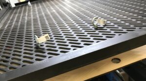 左側が磁石ジグがオス型に取り付けられていればパンチングメタルを落とせば磁力で仮止めが出来てボルトナットで固定が出来ます。